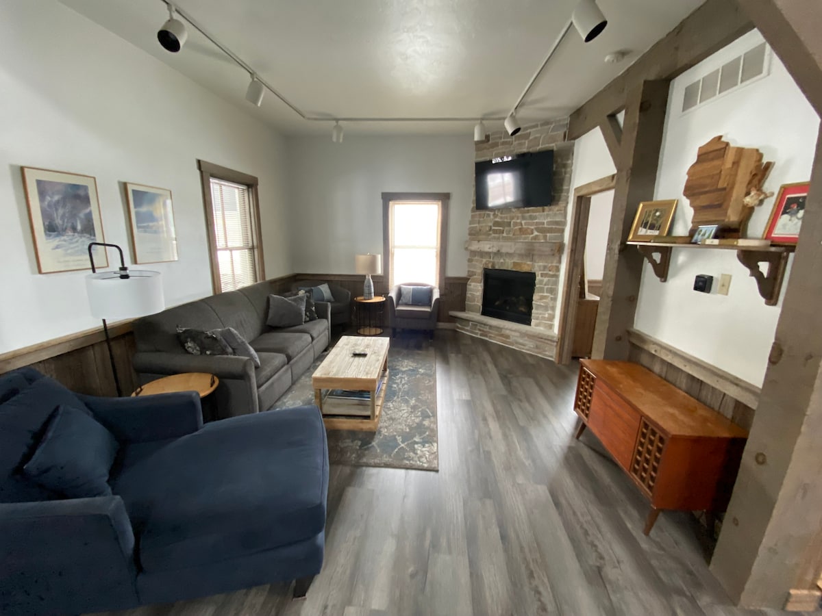 Neadaithe ar Abhainn Betsie in aice le Crystal Mountain, cuireann an A - Frame rómánsúil seo tobán te príobháideach ar fáil faoi spéartha réaltaí, teallach gealgháireach faoi dhíon, agus seomra leapa lochta atá ag breathnú amach ar an abhainn. Sip caife áitiúil ón mbeár espresso, iasc ó bhruach na habhann, nó scíth a ligean cois tine. Deartha do lánúineacha atá fós compordach do theaghlaigh bheaga atá ag lorg saoire shuaimhneach cois abhann. Téann dátaí na deireadh seachtaine go tapa — déan áirithint go luath chun d'fhanacht a chinntiú.