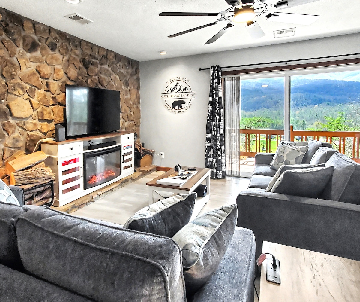 Árasán álainn athchóirithe ar an MBUNURLÁR in ionad saoire Mountain View Condo, díreach amach ó Parkway. Suite GAR do gach rud! Dollywood, The Island, Ball park, siopadóireacht, ithe & siamsaíocht. Inrochtana ag daoine faoi mhíchumas le 3 troithe. Siúil amach an doras tosaigh agus trasna an charrchlóis pháirceála chuig linnte snámha laistigh agus lasmuigh. Téigh amach doirse paitió agus ar fud an charrchlóis pháirceála, chun taitneamh a bhaint as páirceáil amhail rian siúil a shocrú. Is é ár gcuspóir go bhfuil tú ar ais am agus am arís. Bímid bródúil as glaineacht & compord ár n - árasán.