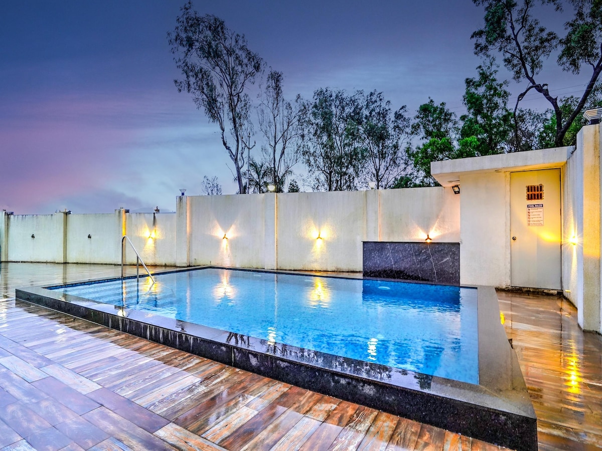 Anandam Lake Villa is a charming 3-bedroom villa in Pune that perfectly balances comfort and nature. Set against the scenic backdrop of the mountains, a serene lake, and the historic Sinhagad Fort, this residence offers breathtaking views from every corner. The interiors are designed for warmth and relaxation, with spacious rooms that open up to tranquil outdoor spaces. Guests can spend leisurely afternoons by the private pool, followed by an evening barbecue or a cozy bonfire under the stars.