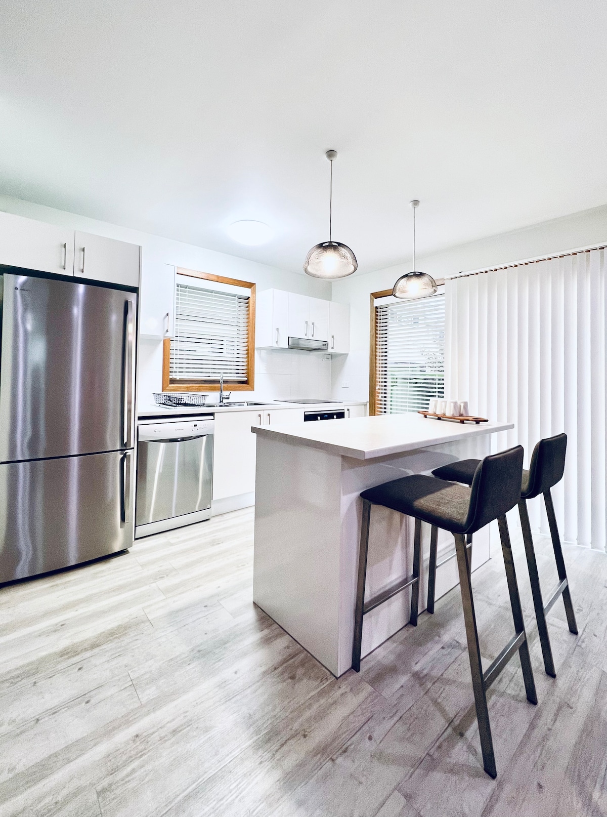 Suite idir an trá agus an loch ag deireadh cul - de - sac ciúin le radharc gleoite ar an murlach! Agus gan ach méadar ar shiúl ó rochtain ar Rian cáiliúil nua Fernleigh! Tá an teach teolaí seo atá feistithe go hiomlán le seomra leapa úrnua agus glan gan smál! Feistithe go hiomlán le gach línéadach, tuáillí, gallúnach, seampúnna, páipéar leithris, meaisín caife Nespresso + cochaill chaife, citeal, caife ar an toirt, málaí tae, siúcra, tóstaer, friochtán aeir & do bhunriachtanais chistine go léir.
