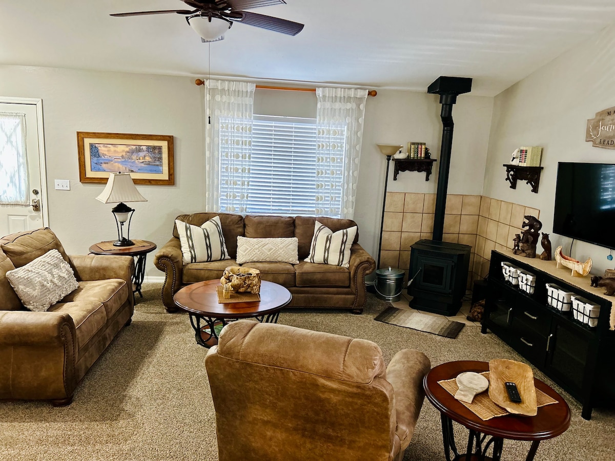 Lig do scíth agus déan iniúchadh ar gach Seó íseal/Pinetop atá le tairiscint lenár dteachín beag bídeach sómasach mar do Cheanncheathrú. Tá cuntair grianchloch álainn, cithfholcadán agus maisiúchán saincheaptha ag fanacht leat ag Luxury ar Lariat! Bain sult as grilling agus eatig dinnéar outoors nó taitneamh a bhaint as na ceantair bialanna cáiliúla ach nóiméad ar shiúl. Cuireann ár réadmhaoin seomra leapa príobháideach ar fáil ina bhfuil leaba Bhanríona, lochta ina bhfuil 2 leaba chúplacha atá foirfe do na páistí(síleáil íseal). Tá idirlíon WI - FI san áireamh. 2 Madraí beaga suas le 35lbs ea