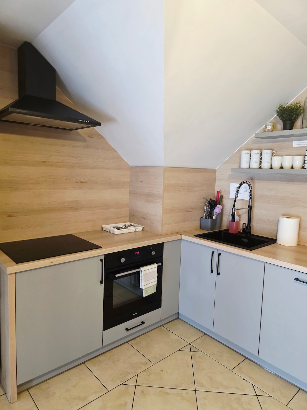 Lig do scíth in árasán nua - aimseartha atmaisféarach ina bhfuil paitió mór, bain sult as do chaife ar maidin amuigh faoin aer i gcomharsanacht shuaimhneach chiúin. Go liteartha siúlóid 10 nóiméad ón lár , tá spás páirceála os comhair an bhloic inár n - árasán mótair. Foirfe do dhaoine singile, do lánúineacha, agus do chairde amháin. Táimid ag tnúth le do chuairt! Trealamh : Tolg tarraingthe amach Línéadach tí úr duivé mór 200*220 Cuisneoir Caife ,tae,siúcra Citeal Glóthach chithfholcadáin Tuáillí Terrace