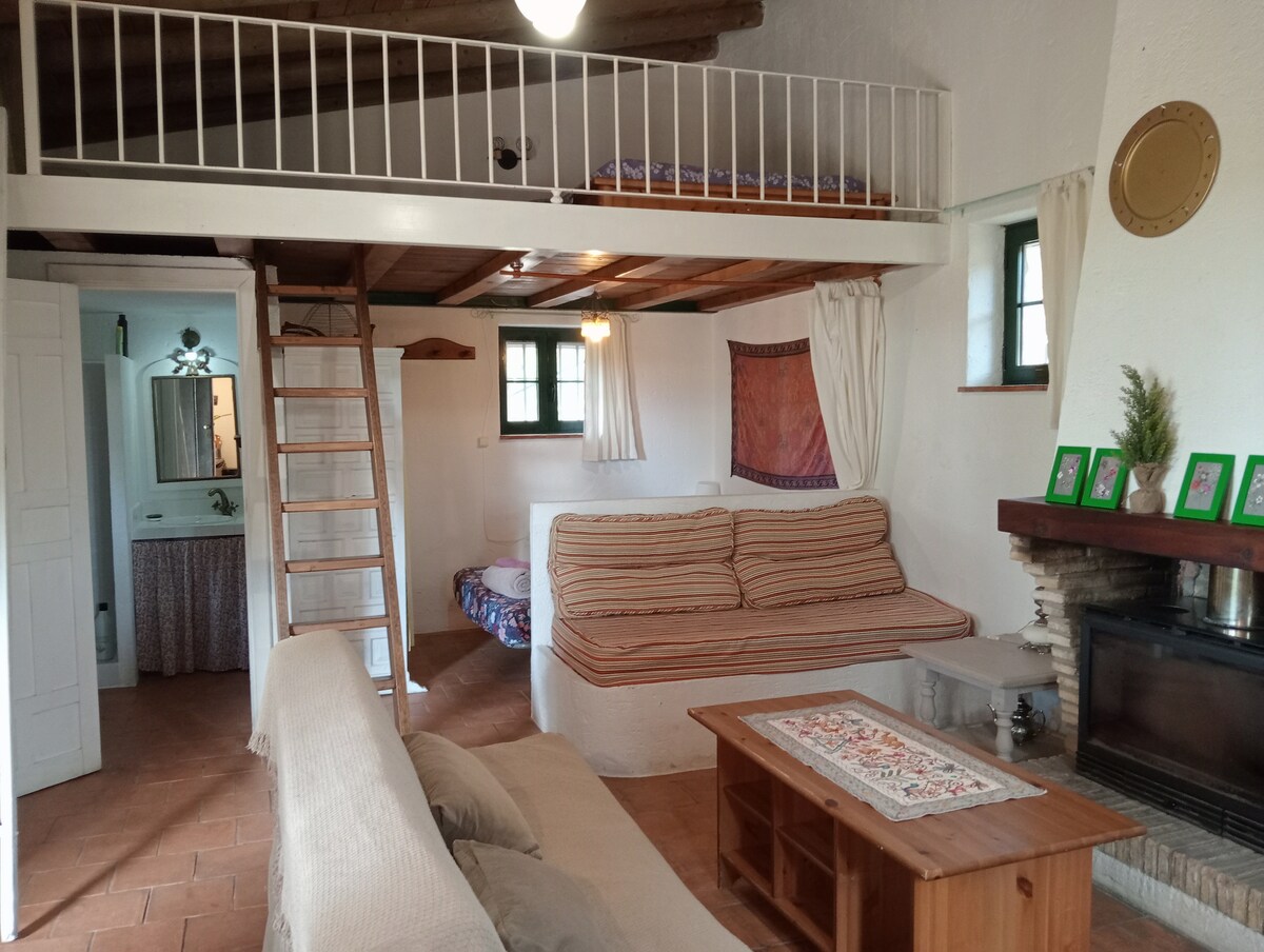 Teach galánta agus obair cheardaíochta, ag urramú foirmeacha traidisiúnta ina athchóiriú. Tá sé suite i sráidbhaile an Collado, Alájar. I gcroílár Sierra de Aracena agus Picos de Aroche. Sráidbhaile ar an mbóthar, 1km ó shráidbhaile Alájar, áit a bhfaighidh tú siopaí, beáir, cógaslann, linn snámha phoiblí, Peña de Arias Montano. Is féidir leat siúl níos mó ná 600km de chosáin, cuairt a thabhairt ar Grotto of Wonders in Aracena, nó taitneamh a bhaint as sráidbhailte áille Sierra. Go hiontach do lánúineacha agus do chairde 'chuid eile.