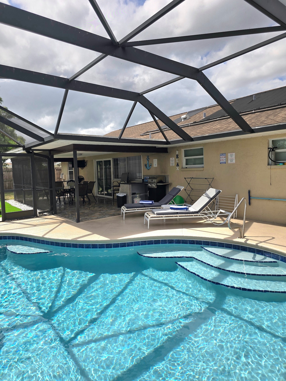 Tearmann síochánta atá foirfe do theaghlaigh ar fud na nglúin. Teach a bhfuil dea - bhail air i gcomharsanacht chónaithe chiúin, díreach nóiméad ó bhialanna, ó shiopaí agus ó áiseanna laethúla. Bain sult as roghanna gan teorainn le haghaidh scíthe agus eachtraíochta - téigh ag snámh sa linn snámha phríobháideach, caith an lá ag tránna in aice láimhe, nó déan iniúchadh ar lár bríomhar Bradenton. Le ceithre sheomra leapa fairsinge agus dhá sheomra folctha iomlána, freastalaíonn an teach go compordach ar suas le deichniúr aíonna.