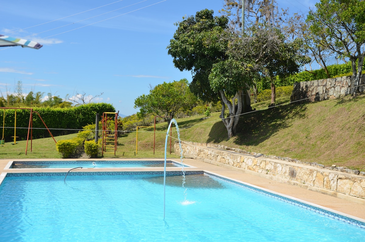 Fáilte go dtí ár Finca la Lomita le haghaidh caitheamh aimsire agus scíthe faoin tuath! Ideal chun éalú ón gcathair agus taitneamh a bhaint as suaimhneas an dúlra. Is áit iontach é do theacht le chéile teaghlaigh. Tá áiteanna móra glasa, linn snámha úrnua agus seomraí compordacha inár n - eastát chun fanacht compordach a chinntiú. Tá linn snámha bheag, limistéar dóiteáin, beárbaiciú, go leor páirceála agus aeráid dheas mheasartha ann. Áit theolaí atá an - ghar do Bogotá!