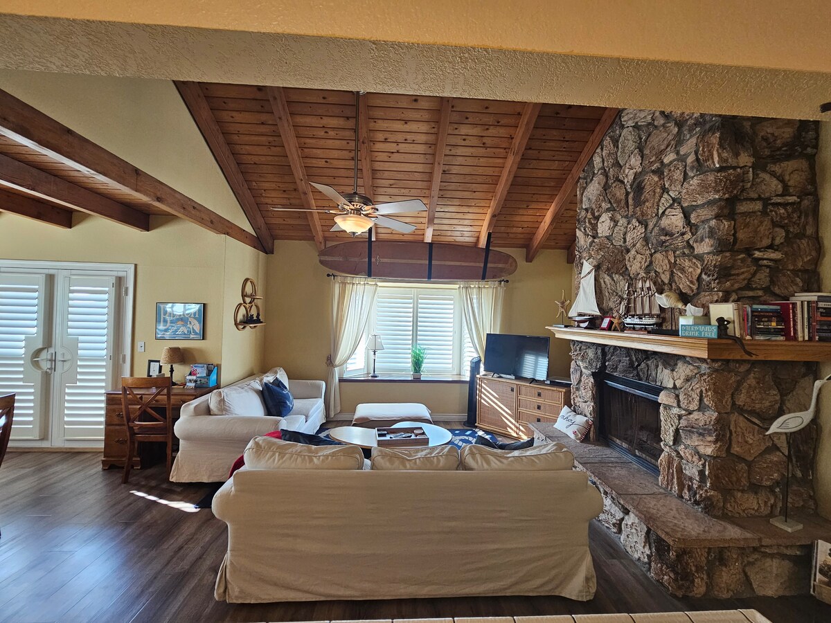 Éalaigh ón saol laethúil go Malibu Hideaway! Neadaithe sna cnoic le radhairc iontacha ar churaigh, ar shléibhte, ar Loch Sherwood & ar roinnt cathracha chomh fada agus is féidir leis an tsúil a fheiceáil! Tá ár dtroscán déanta de láimh ó adhmad athghinte grianmhar California. Is é ár dtocht hibrideach só orgánach cúr/coil le haghaidh compord ultra. Cuilteog chlúmhach síos i míonna fuara. Tá tobán seanré, seinnteoir ceirníní, teallach bréige, Keurig, micreathonnán, mionchuisneoir, t.v cliste 55 orlach, tábla/cathaoireacha, tábla tae seanda sa seomra suite.