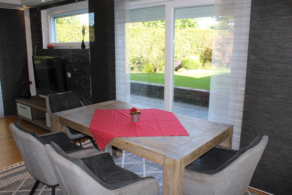 Teachín le radharc iontach ar an loch, feistithe go compordach, 3 sheomra leapa, seomra suí mór ina bhfuil cistin oscailte, teallach, teilifís satailíte, Wi - Fi, ardán 40 méadar cearnach locha,san áireamh Línéadach leapa agus tuáillí/tuáillí cithfholcadáin. Cuirimid timpeallacht tuaithe, nádúrtha ar fáil, den chuid is mó 1 -2 forbairt chónaithe urláir agus radharc gan dealramh ar an Rursee. Peataí ar iarratas.