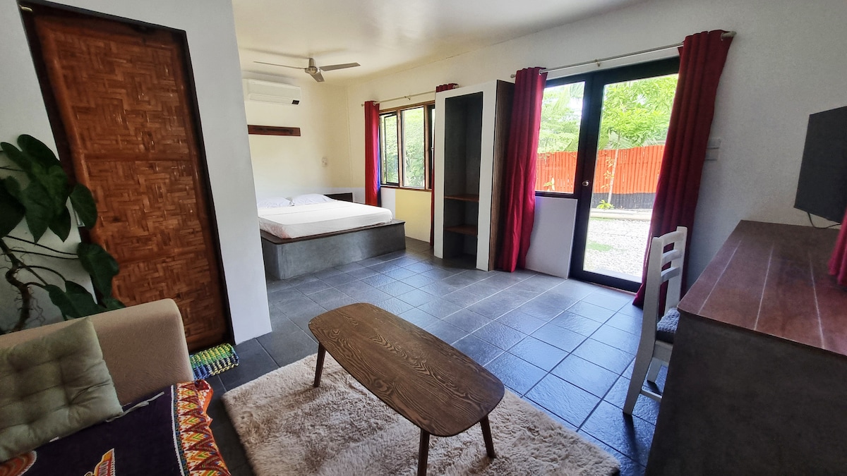 Is é an villa an seomra is sómasaí atá againn ag Adayo Cove Resort ar oileán álainn Siquijor, na hOileáin Fhilipíneacha. Tá a chistinéad féin sa villa le haghaidh cócaireachta, seomra leapa fairsing ar leith ina bhfuil leaba bhanríona, seomra suí ina bhfuil tolg agus cuilithe, agus seomra compoird príobháideach ilghnéitheach ina bhfuil cithfholcadán uisce te. Aircon scoilte den scoth i do chónaí agus sa seomra leapa araon. Úsáid linn snámha san áireamh. Bíodh orainn do ghníomhaíochtaí tumadóireachta agus oileáin go léir a shocrú! (Tabhair faoi deara dár n - aíonna Síneacha - glacaimid le WeChat agus Alipay anois!)
