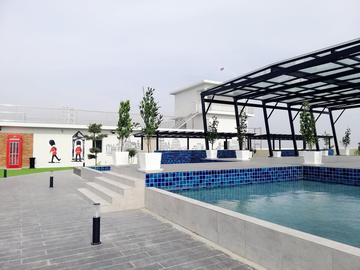 SELF CHECKIN anytime BED ROOM x 3 No.1 (Aircond+Fan) King Bed+BabySwing No.2 (Aircond+Fan)Queen+Single Bed No.3 (Aircond+Fan) Single Bed x 2+Baby Cot Bathroom x 2 Water Heater x 1 LIVING ROOM TV,MYTV,SofaBed,Fan KITCHEN Dining Table, Baby Chair, Refrigerator, Water Filter (Hot/Cold), Air Fryer,Induction Cooker, Kettle, Pressure Cooker, Snacks Drinks. OTHERS Public Pool at ClubHouse (Not Include Fee Per Head) Washing Machine,Dry Iron & board, TOWEL,Shampoo&BathGel, Extra Pillow&Blanket