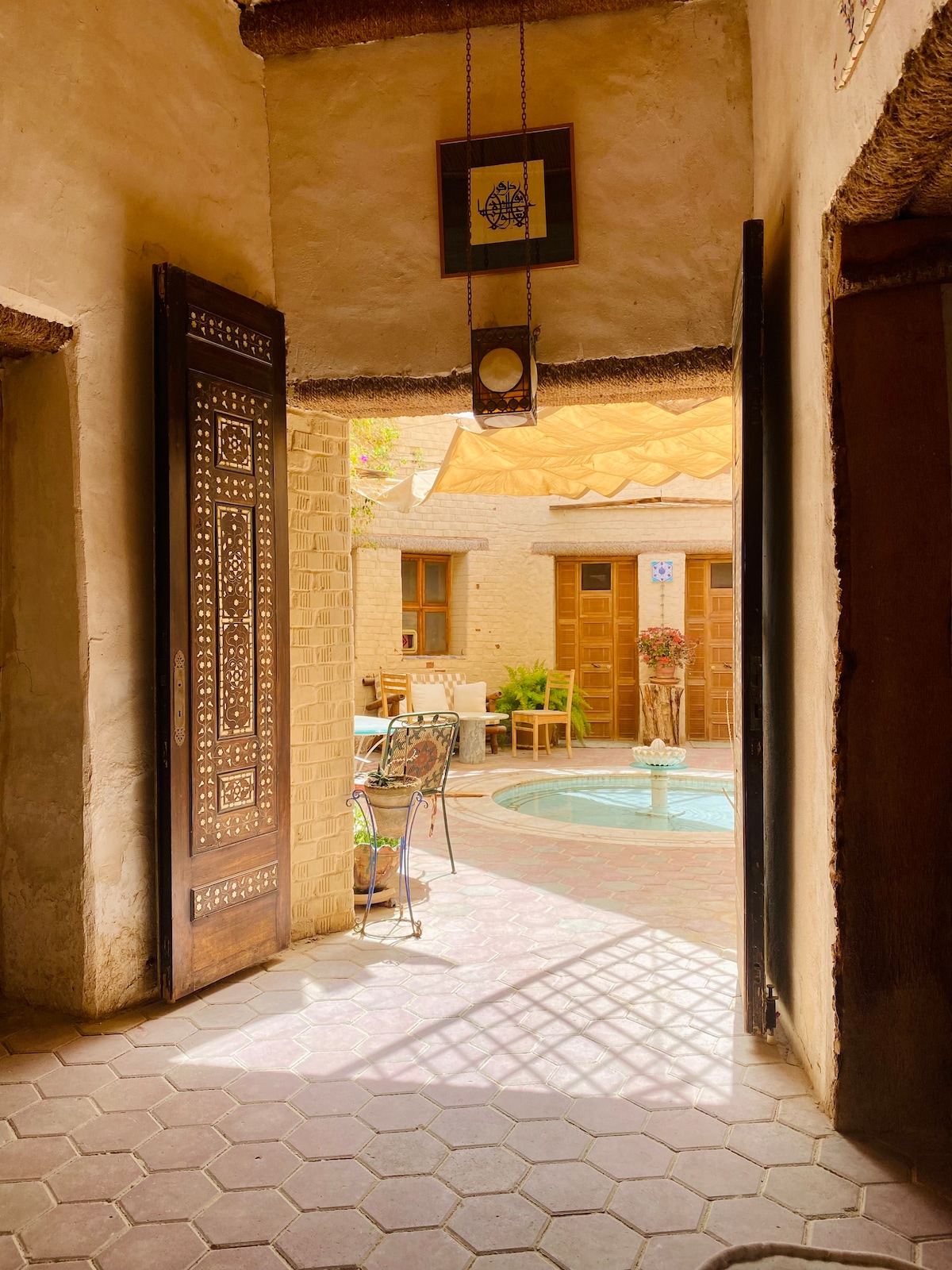 Hidden among palm trees in the heart of Siwa Oasis, this private villa offers a peaceful retreat away from the bustle. Just a 10-minute walk (3 minutes by car) from the lively Siwa market, it balances serenity with convenience. Built as an earth home using traditional mud and natural wood, the space reflects Siwa’s spirit. Handcrafted olive-wood furnishings, warm salt lamps, and natural textures create a grounding atmosphere designed for rest, renewal, and reconnection.