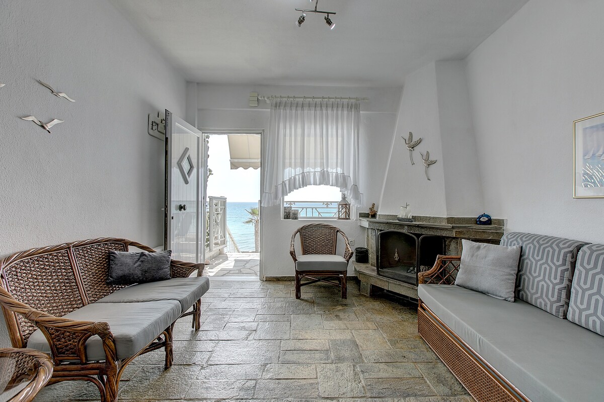 Teach i Fourka ar dtús ar an bhfarraige, radharc ar an gclós!