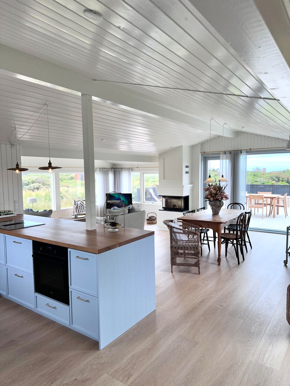 Bíodh eispéireas dúlra agat inár dteach cois na Mara Thuaidh. Tá radharc álainn ar an aigéan ón teach agus tá sé suite in áit shuaimhneach timpeallaithe ag féar mara agus ceannbhach. Faigh blaiseadh de luí gréine álainn ón seomra suí, ón gcistin, agus ar cheann de na hardáin. Níl an Mhuir Thuaidh ach 100 méadar ón teach, níos lú ná 5 nóiméad ar shiúl, agus mar sin is féidir leat na tonnta a fheiceáil agus a chloisteáil ar ár lochtán. Nuair a thiocfaidh tú, beidh tú in ann do scíth a ligean mar go bhfuil do leaba cóirithe againn agus an tine lasta againn duit.