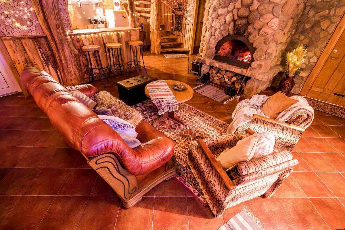 "Kripynė" dóibh siúd atá ag iarraidh éalú ó bhuairt na cathrach agus a bheith ag mothú cosúil le bheith i dteachín sléibhe Mheiriceánach. Gheobhaidh tú teallach mór cloiche anseo a chruthóidh compord ar oícheanta fuara, chomh maith le jacuzzi agus sauna. Is áit iontach é seo do dheireadh seachtaine rómánsúil do bheirt nó do shaoire shuaimhneach leis an teaghlach. Oireann sé do chuideachtaí móra cairde freisin (18 áit chodlata) Sa teachín beidh tú in ann úsáid a bhaint as: Spotify, Youtube nó Netflix WIFI saor in aisce Trealamh fuaime (más mian leat)