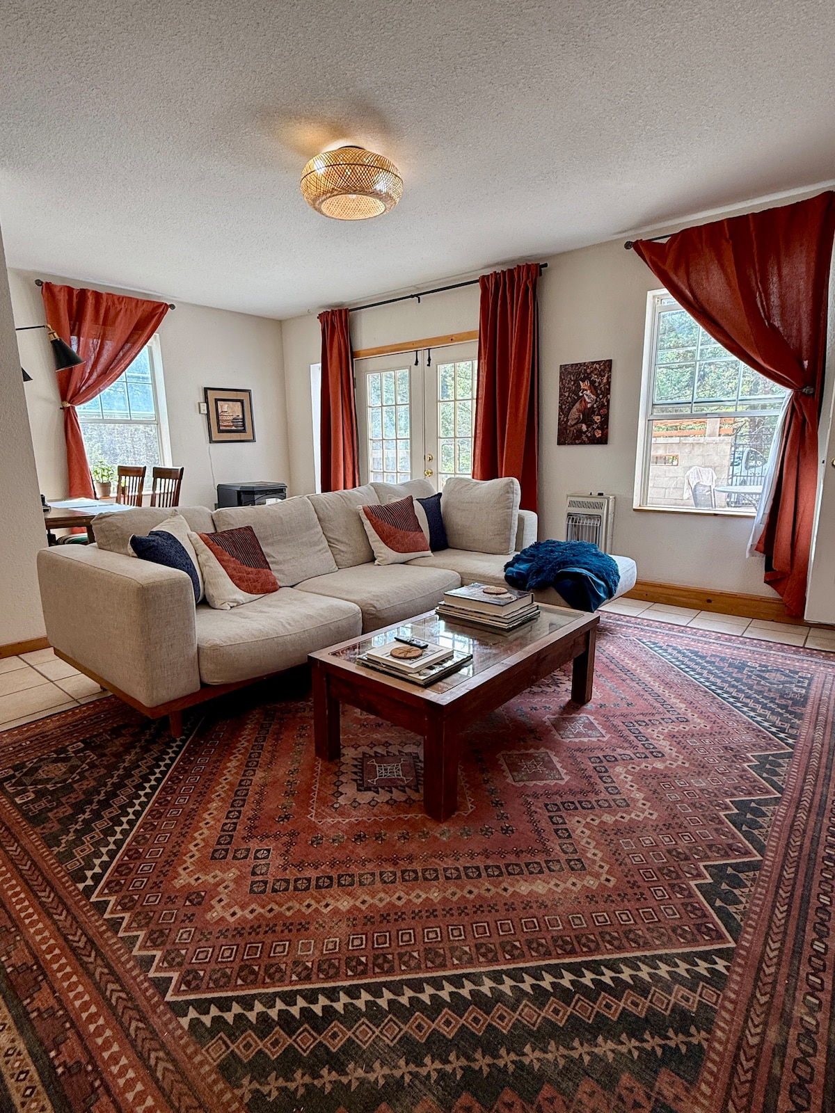 Jeff - Tá an Teach Ealaíne suite i Sráidbhaile Cloudcroft, agus é suite ar shiúl ón torann ach tá sé fós ag siúl achar go dtí an baile. Tá an teach folctha 2 sheomra leapa 1 compordach le seomra suí deas oscailte, cistin lánfheistithe ina bhfuil bia, agus leapacha compordacha ar mhéid na banríona. Tá an ealaín in Jeff déanta ag ealaíontóirí áitiúla agus tá sí suas le ceannach! Is féidir leat píosa beag de Cloudcroft a thabhairt abhaile! Tá cónaí orainn béal dorais agus tá siad ar fáil le haghaidh ceisteanna ach coinnigh muid féin.