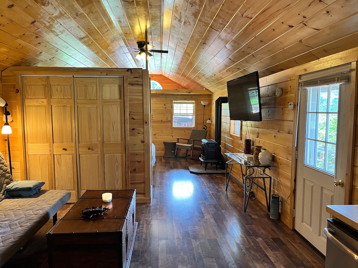 Éalaigh go dtí ár bhFráma A - Fhráma Draíochtúil Cois Abhann ar 4 acra chúlráideacha. Snámh san abhainn dhraíochta, gríoscán dinnéar faoi na crainn, agus bailigh le chéile ag an bpoll dóiteáin faoi bhun soilse téada twinkling & spéir scaipthe le réaltaí gan deireadh. Féach ar fhianna, iolair & fireflies agus tú ag scíth a ligean sa chábán teolaí 2BR seo. Foirfe do lánúineacha, do dhaoine a bhfuil dúil acu sa dúlra, agus do dhuine ar bith atá ag iarraidh tearmann síochánta. Miontuairiscí ó shiúlóidí áille & eachtraí Delaware River a nascann go domhain leis an dúlra - fág ag mothú gur éirigh tú as leabhar scéalta.