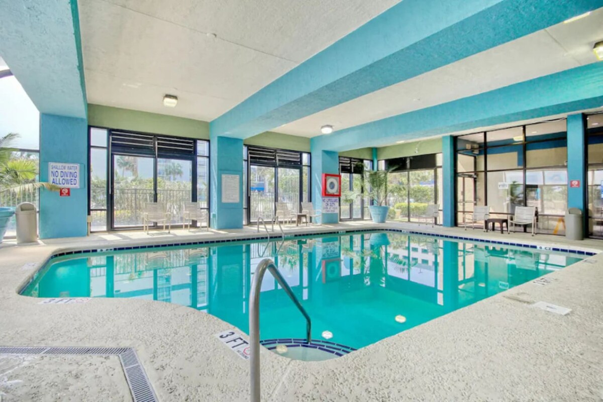 Lig do scíth agus faigh do scíth san árasán cósta ciúin seo ina bhfuil 2 sheomra leapa in Myrtle Beach. Suite go foirfe in aice le cúrsaí gailf agus díreach nóiméad ón trá, ó bhialanna agus ó shiopaí, tá compord agus suaimhneas ar fáil sa spás nua-aimseartha seo i bpobal suaimhneach. Bain sult as linn snámha lasmuigh chomhroinnte, cistin lánfheistithe, Teilifís Chliste, Wi-Fi ardluais, balcóin phríobháideach, páirceáil saor in aisce, agus féinseiceáil isteach éasca. Foirfe do lánúineacha, do theaghlaigh bheaga, do shneachtaéin, nó do shaoire shuaimhneach cois cósta.