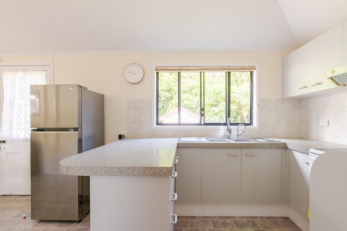 Bain sult as fanacht síochánta i do sheomra leapa ina bhfuil árasán príobháideach atá go hiomlán agus atá feistithe le gach rud a bheidh uait. Beidh bealach isteach ar leith, verandah agus cistin lánfheistithe a dhéanamh le haghaidh fanacht úrnua. In aice le siopaí, bialanna agus iompar poiblí is féidir leat a leagan amach chun pleananna an lae a dhéanamh. Caith do thráthnónta ag ligean do scíthe ag an gcrompán meandrach timpeallaithe ag bushland ar maos i suaimhneas an dúlra. Tá áiseanna níocháin ar fáil ach iad a iarraidh.