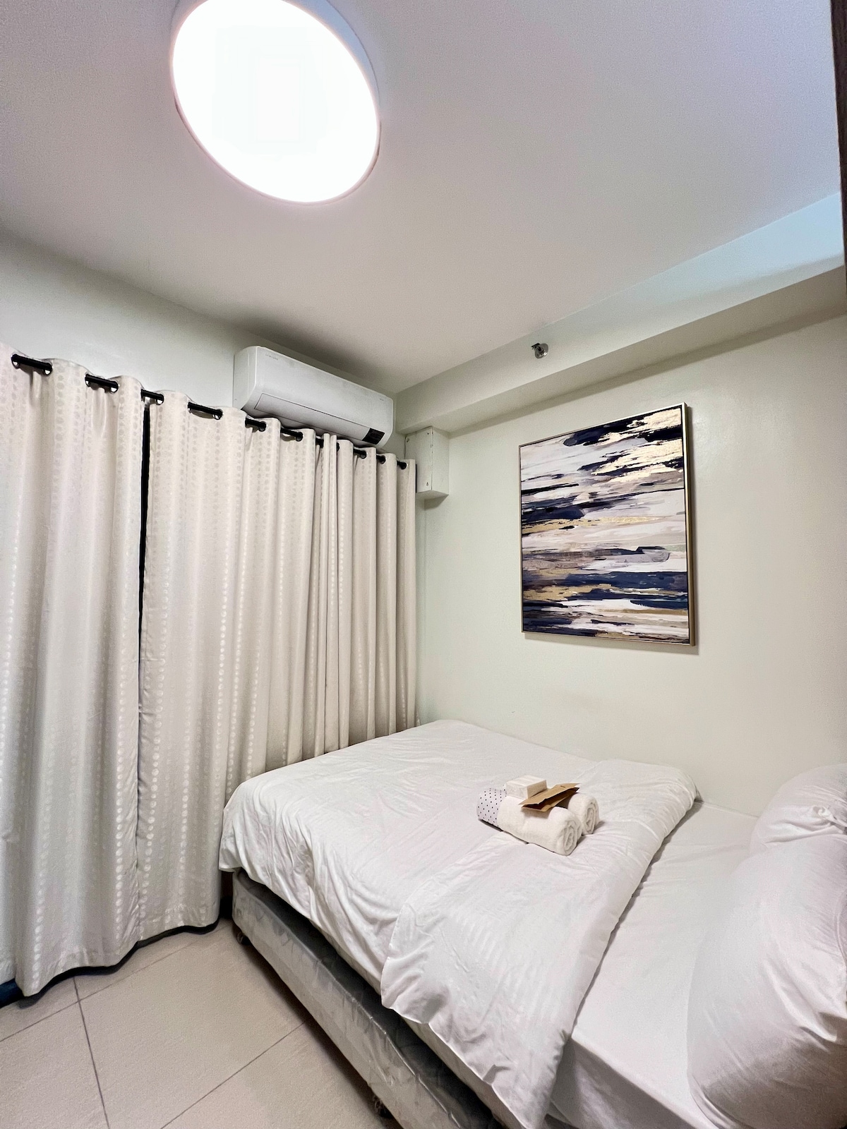 🌟 LOCATION LOCATION LOCATION 🏃♀️Closest Condo to MOA (5-Min Walk) ❤️Quality stay w/ experienced hosts 😻32 sqm (344 sq ft) space 🛏️ Premium hotel-quality bed & linens for a restful sleep 🛁 Plush towels & essential toiletries 🧺 In-unit washer & dryer 🍽️ Complete Kitchen & cooking essentials 📺 Smart TV, reliable 100 mbps Wi-Fi, air conditioner 🏊♂️ Access to swimming pools 🛌 Accommodates up 2-4 guests 1 Premium Full Double-sized bed (54×75 inches) 1 Double-sized Sofa bed