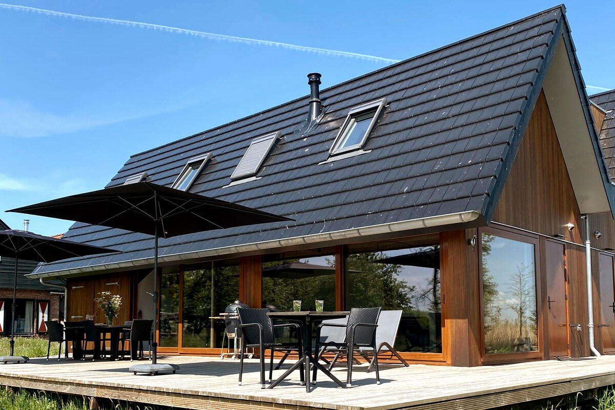 Villa saoire fairsing compordach ar an uisce, i lár an dúlra agus spóirt uisce Paradise Páirc náisiúnta de Alde Feanen. Tá gairdín mór ag an iar - theach cuideachta ina bhfuil Sabhna Fionlannach, cithfholcadán Gaile agus Hottub (táille bhreise!), lóistíní, ardáin agus trá phríobháideach. Áit saoire iontach do theaghlach amháin nó níos mó nó do ghrúpa cairde. Tá an teach atá oiriúnach do pháistí feistithe go hiomlán: gairdín mór, seomraí fairsinge, leapacha compordacha agus cistin mhór nua - aimseartha.