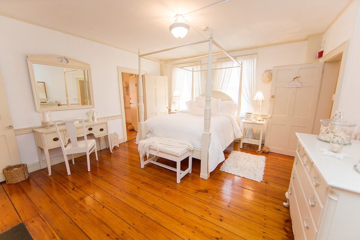 Fágann toin bhog agus éadaí leapa pluaise go bhfuil an seomra gleoite seo ina thearmann suaimhneach le haghaidh scíthe. Agus é suite i gcnoic rollta Oirthuaisceart Connecticut, is teach ósta stairiúil é The Cottage House ina mbuaileann fáilteachas le draíocht shíoraí. Le seomraí fáiltiúla, cnoic theolaí, agus atmaisféar suaimhneach, cuireann ár dteach ósta éalú síochánta ar fáil dóibh siúd atá ag lorg scíthe, scíthe agus nasc croíúil.