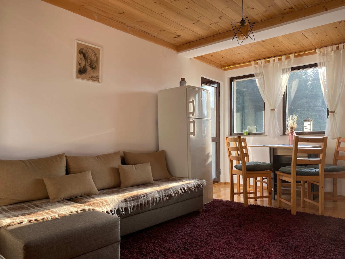 TÁ SÉ IN AM TEAS a bhaint as ár n-árasán compordach ciúin ina bhfuil 2 sheomra leapa, SCIÁIL GO DTÍ AN DORAS - 50m ó ardaitheoir sciála Studenetz! Is féidir leat taitneamh a bhaint as an ngeimhreadh in aice leis an teallach. Rochtain ar chistin lánfheistithe agus ar bhalcóin óna bhfuil radharc iontach ar na sléibhte. Tá fáilte roimh lánúineacha, eachtránaithe aonair agus teaghlaigh! Gach rud in aon ionad amháin: ollmhargadh Aliaska, ionad SPA (liosta praghsanna ar bheár an fhorhalla), bialanna, beár an fhorhalla, teach óil agus babhláil. Guímid fanacht den scoth ort i Sléibhte Rhodope!