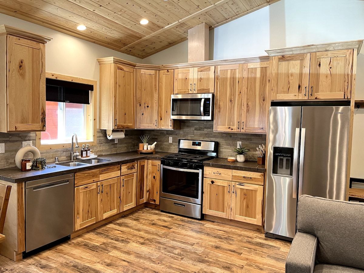 Éalaigh go dtí an saol mór amuigh faoin aer ag an teachín athchóirithe seo sa tír. Meascann an teach bailchríocha adhmaid tuathúla le saoráidí chic, maisiúchán seanré, agus tá síleálacha ardeaglaise buaice, lochta mezzanine, teallach balla cloiche nochta, agus deic bheárbaiciú ag breathnú amach ar an TOBÁN TE príobháideach. Tá an réadmhaoin siúlóid ghearr ó Chruinniú Mullaigh Sneachta le haghaidh sciála, imeachtaí, bialanna, siopa caife, marcaíocht rothar, fánaíocht, agus go leor eile. Is tiomántán gearr chuig an loch é le haghaidh bádóireachta, iascaireachta, cadhcála agus seaschéaslóireachta.