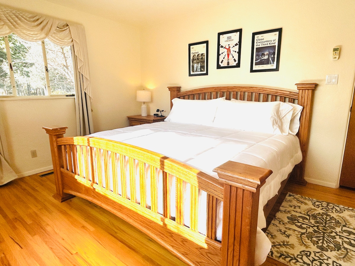 A stay for the curious and the clever. 5 min drive to EMRTC. 25 min drive to the Bosque Del Apache. Steps from the New Mexico Tech campus, this spacious Socorro home blends comfort with playful science-nerd charm, space, Pi, cranes, retro films, and a touch of alien mischief. Create, calculate, and unwind with fast Wi-Fi, a standing desk, comfy couches, and a lush fenced garden. Perfect for researchers, thinkers, and travelers who appreciate a home with brains, heart, and a sense of humor.