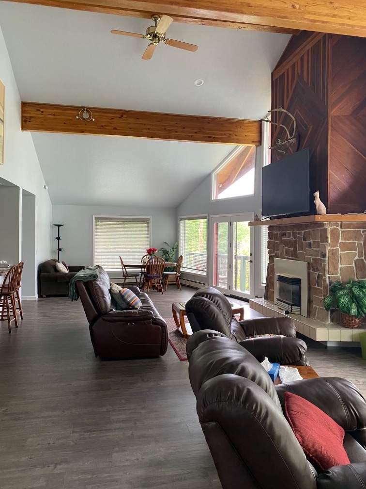 Tá an teach suite ar theach 100 acra. Tá sé inár dteaghlach le breis agus 75 bliain. Tá 3 sheomra leapa agus 2 sheomra folctha iomlána ar fáil sa teach álainn seo. Tá radharc iontach ar an abhainn agus ar na sléibhte sa phríomhsheomra leapa. Bain sult as na fuinneoga móra gleoite a ghabhann abhainn álainn Kasilof agus an sliabhraon iontach. Cuireann deic mhór neart spáis ar fáil chun siamsaíocht a chur ar fáil do mhuintir agus do chairde.