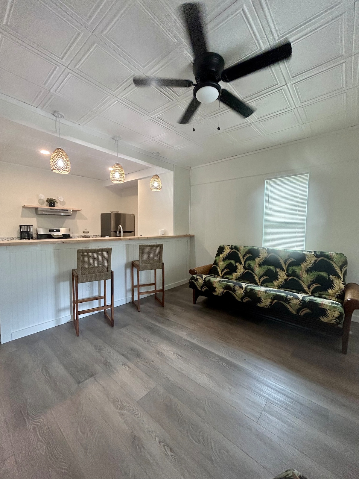 Fáilte chuig An Teach Sáile! Cuid de cheantar stairiúil Ocean City, a tógadh i 1920 agus a athchóiríodh in 2020, tá an teach seo lán le seandraíocht, le bailchríocha nua - aimseartha cois cósta. Tá an Svuít Taoide Íseal suite ar an gcéad urlár den teach, a sholáthraíonn rochtain éasca d'aíonna atá ag taisteal le páistí nó le haíonna níos sine nach fearr leo go leor céimeanna a dhéanamh. Le siúlóid ghearr 10 nóiméad go dtí an trá agus an clárchosán, is áit iontach é an spás íostach nua - aimseartha seo le bheith i do chónaí ann do do shaoire cois trá!