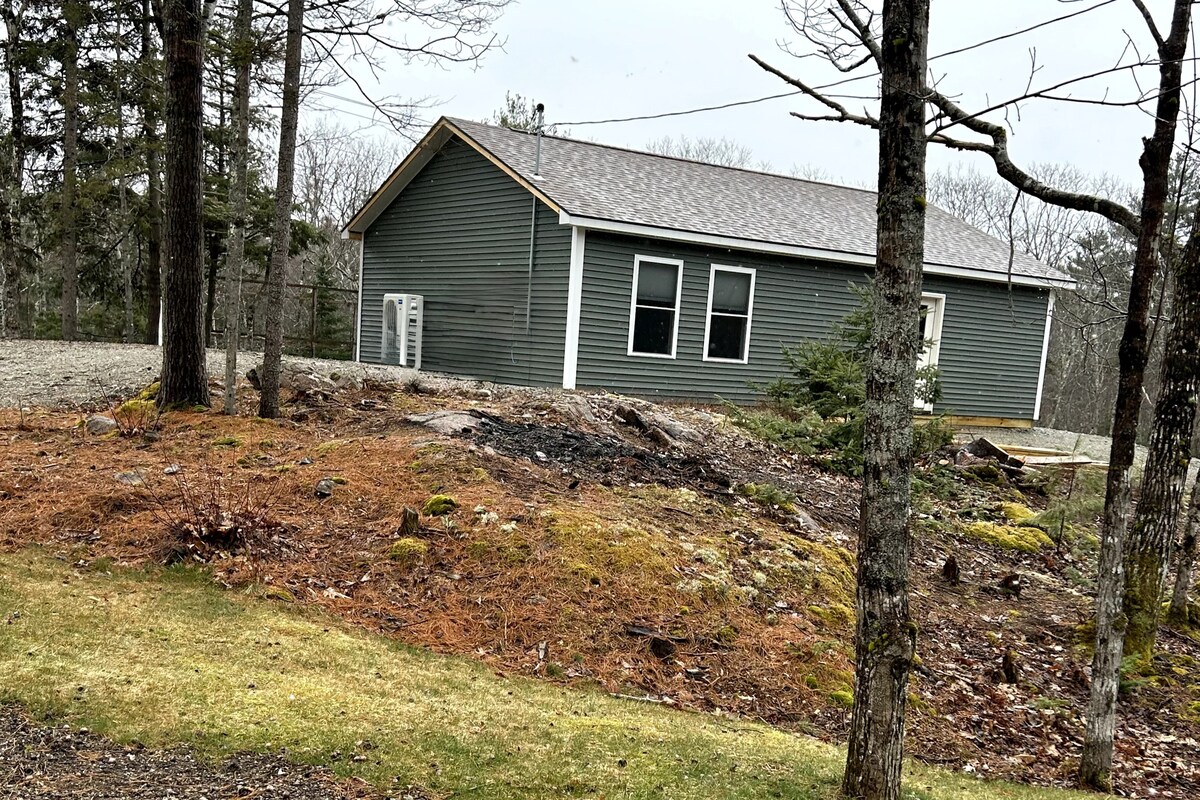 Romantic and luxurious, this 2,000 square foot modern cottage nestled on twelve acres is a favorite of honeymooners and lovers of modern design * One hour to Acadia National Park & Bar Harbor; 15 minutes to shopping, hiking, swimming * Stargazing deck * 2 full baths, one with steam shower * Fully equipped kitchen with under-counter fridge/freezer * Two gas fireplaces, one indoors, one on a covered deck * Queen bed with luxurious linens and pillows * WIFI, streaming TV, grill, bar * EV charger