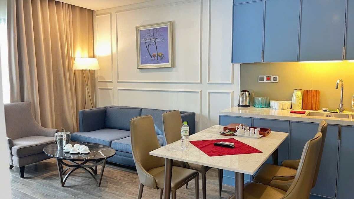 Is árasán príobháideach ~ 80m2é m'áit atá suite in Óstán A La Carte cois trá. ~ ach siúl 1 nóiméad go dtí My Khe Beach (díreach trasna na sráide) ~ radharc iontach ar an aigéan ón seomra ~ 2 sheomra leapa, 1 tolg sa seomra suí agus cistin, 2WC ~ feistithe go hiomlán le saoráidí riachtanacha agus Wi - Fi saor in aisce ~ foirfe do theaghlach mór ~ rochtain ar an bpointe ar bhialanna ar an trá NÓTA: níl glanadh bricfeasta agus seomra san áireamh sa phraghas