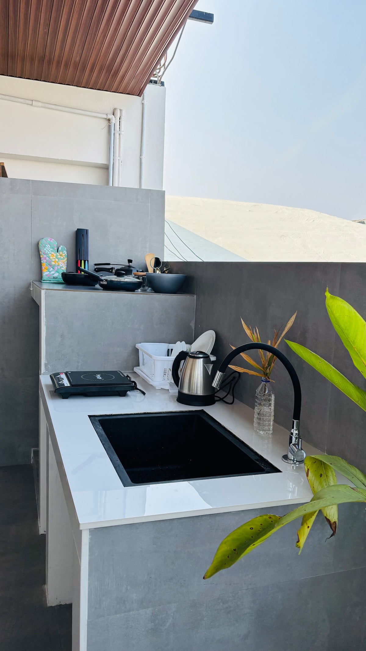 Is árasán uirbeach é ina bhfuil seomra folctha agus cistin cheangailte, a sholáthraíonn na saoráidí go léir i dteach mar aon le stáisiún oibre agus gairdín os comhair balcóin. Soláthraíonn atmaisféar geal, fairsing agus aerach timpeallacht úrnua chun scíth a ligean agus taitneamh a bhaint as am síochánta. Tá an spás suite go lárnach agus tá ospidéil mhóra, malls, oifigí/ionaid chóitseála & bialanna/áiteanna áineasa thart timpeall air.
