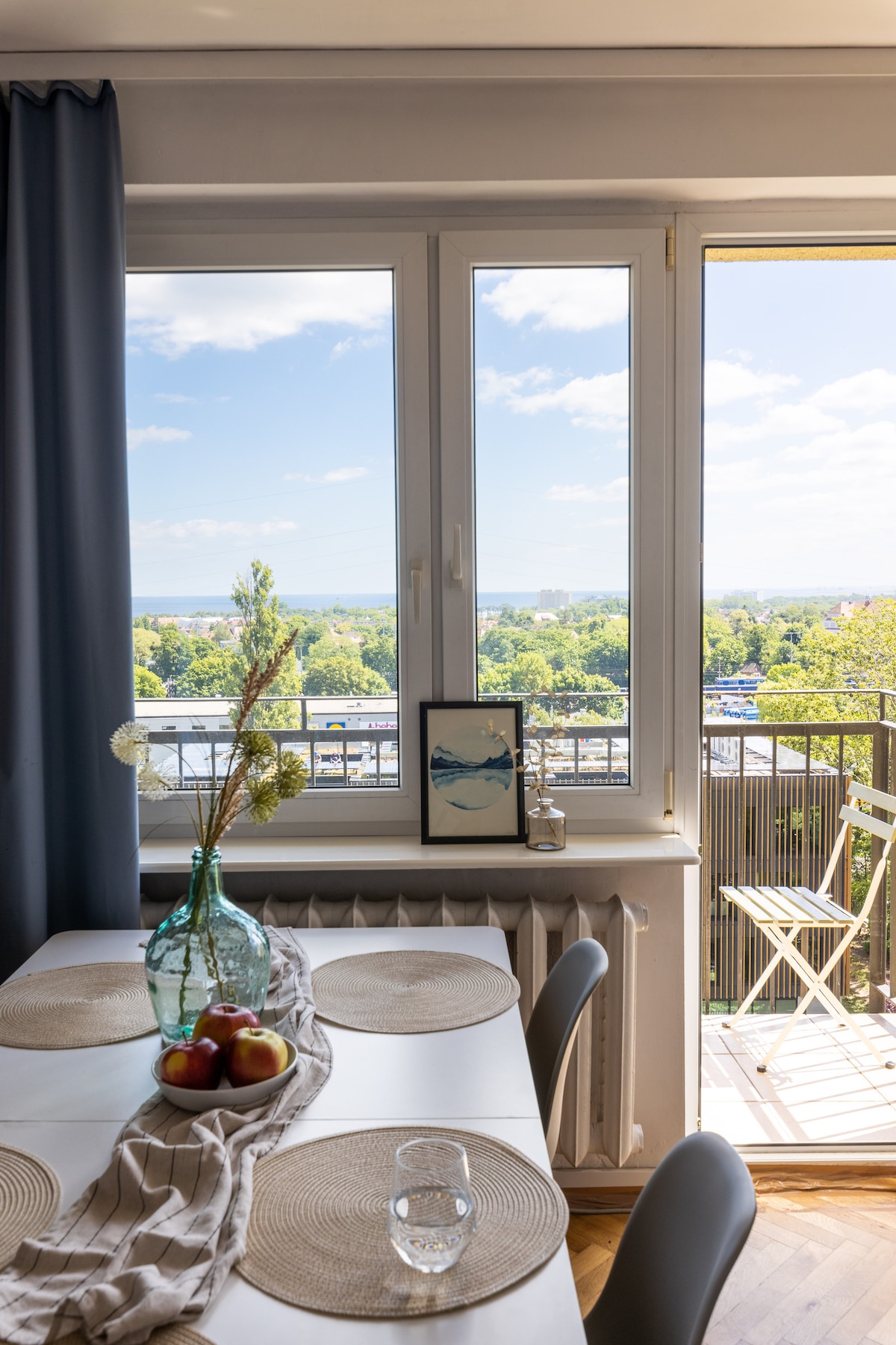 Tá a stíl féin ag an áit uathúil seo. Árasán nua-aimseartha ar an 11ú hurlár óna bhfuil radharc lánléargais ar Gdańsk. Foirfe do lánúineacha nó do thaistealaithe. Tá an taobh istigh idir ghalánta agus cluthar—seomra suí fairsing, cistin lánfheistithe, leaba chompordach, agus aerchóiriú a chinntíonn compord iomlán. In aice leis an trá agus le Páirc Reagan, agus spás páirceála príobháideach sa gharáiste faoi thalamh.