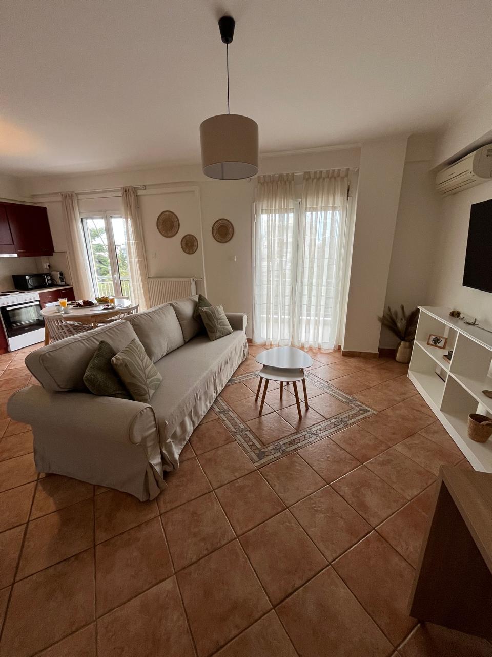 Is árasán neamhspleách compordach é, 60 m2 le rochtain dhíreach ar ghairdín álainn agus radharc iontach ar an bhfarraige ón seomra suí agus ón seomra leapa. Lonnaithe i gceantar an - chiúin in Artemida (bruachbhaile na hAithne) 1,8 km ó lár an bhaile, 15 nóiméad sa charr ón aerfort agus 20 nóiméad sa charr ó chalafort Rafina. Is féidir lenár n - aíonna taitneamh a bhaint as scíth a ligean idir eitiltí nó saoire iomlán a chur in áirithe ar shiúl ó thorann an ionaid ach gar go leor (1,8km) más mian leat bialann nó teach tábhairne a bheith agat.