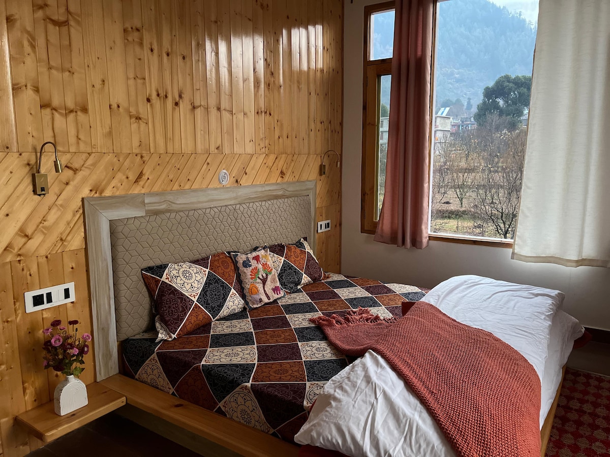 Cuireann an cábán adhmaid cluthar seo atá oiriúnach do bhuiséad i ngleann álainn Deohari/Sainj eispéireas gar don dúlra ar fáil. Is féidir leat taitneamh a bhaint as an radharc den fhód de oighearshruthanna a bhfuil caipíní sneachta ann ó shó do leaba bhog chompordach nó iniúchadh a dhéanamh ar na siúlóidí iontacha chuig sléibhte, easanna agus móinéir timpeall. Tar agus scar le draíocht an dúlra leis na bunsaoráidí go léir le haghaidh eispéireas dodhearmadta le bheith ag faire amach ar feadh an tsaoil!