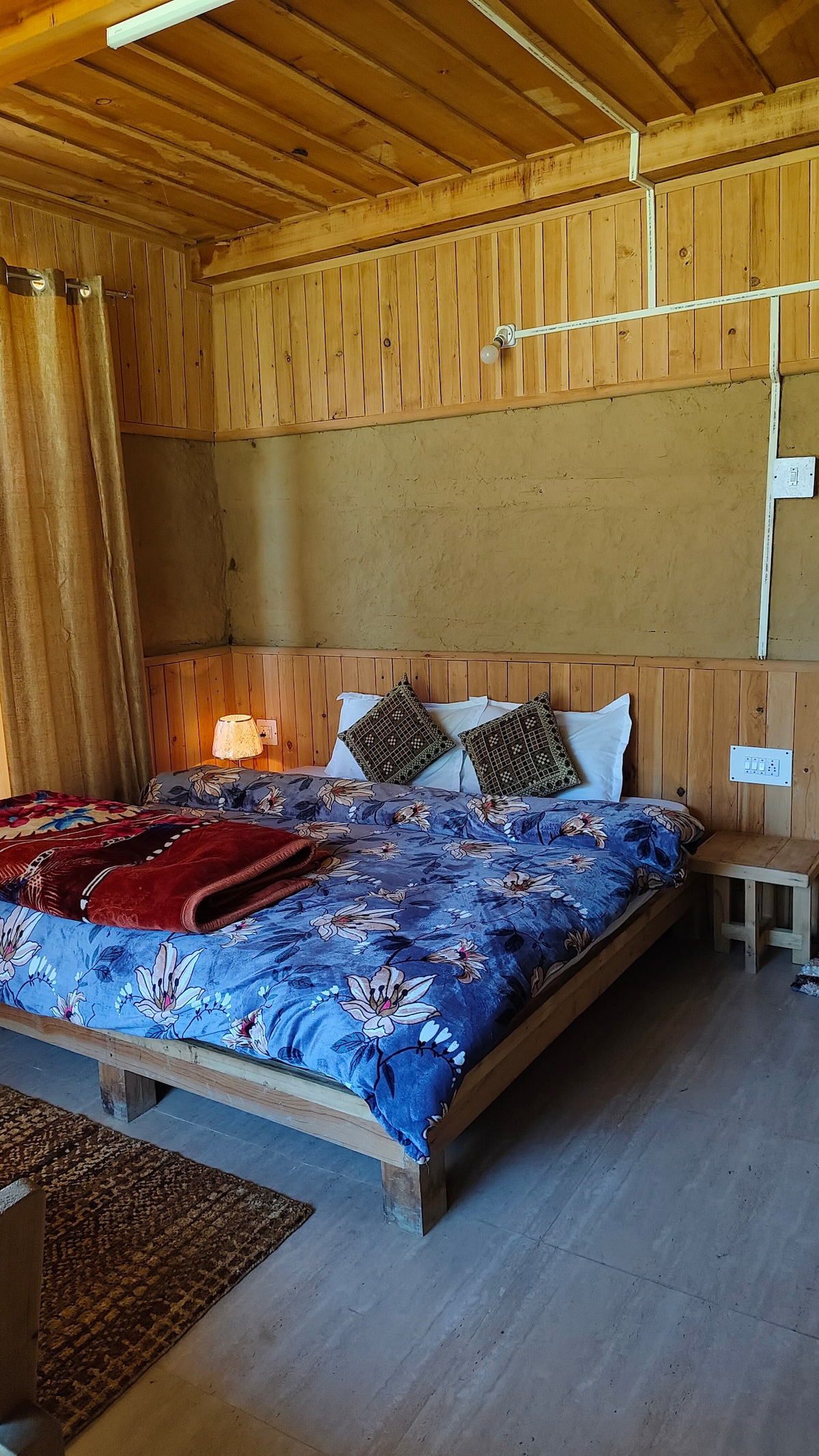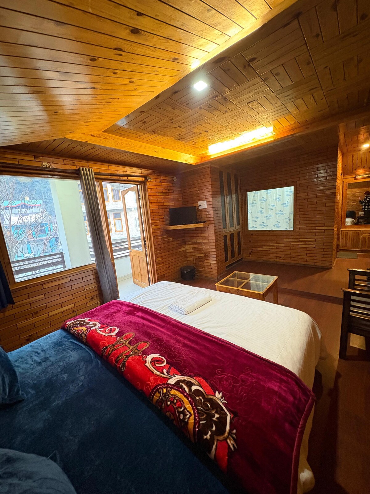 Tá aerchóiritheoir te/fuar, Wi - Fi, teilifíseán cliste 43 orlach inár Seomraí Deluxe le cainéil OTT, citeal leictreach, leaba dhúbailte le tochtanna 10 n - orlach le téitheoirí leapa leictreacha, balcóin atá os comhair na habhann agus radharc maorga ar shléibhte. Tá na saoráidí riachtanacha go léir sa seomra folctha en suite amhail tuáillí úra, seampú, níochán coirp, taiseoir, trealamh fiaclóireachta, soláthar 24 uair an chloig d'uisce te agus fuar. Tá méid an tseomra leapa 11x12 troigh. Tá an seomra folctha 7x5 troigh. Tá méid an bhalcóin phríobháidigh 8x4 troigh.
