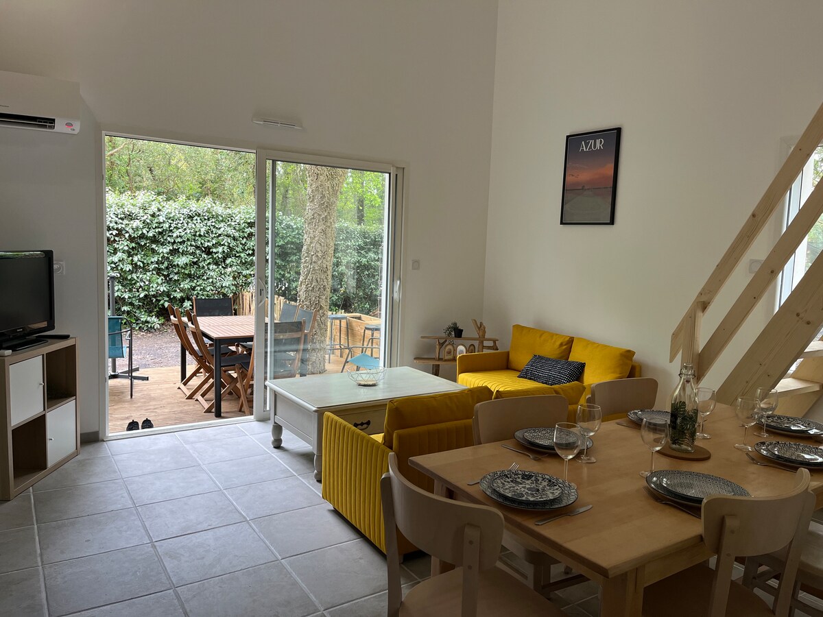 Teach sraithe T3 67m2 urlár na talún le gairdín, 100m ó loch na farraige, 200m ón aigéan ,gan aon tobac a chaitheamh ,i gceantar an - chiúin. 1 seomra leapa le 2 leaba shingil, mezzanine ar leith le 1 leaba dhúbailte. 1 scáthleaba ar iarratas. Urlár talún tolg neamh - in - chomhshóite. , aerchóiriú. Cistin lánfheistithe, gairdín fálaithe le beárbaiciú, veranda agus ardán faoi throscán. teach rangaithe 3 réalta ag an oifig roinne mar gheall ar thurasóireacht. Níl sé inrochtana ag cathaoireacha rothaí.