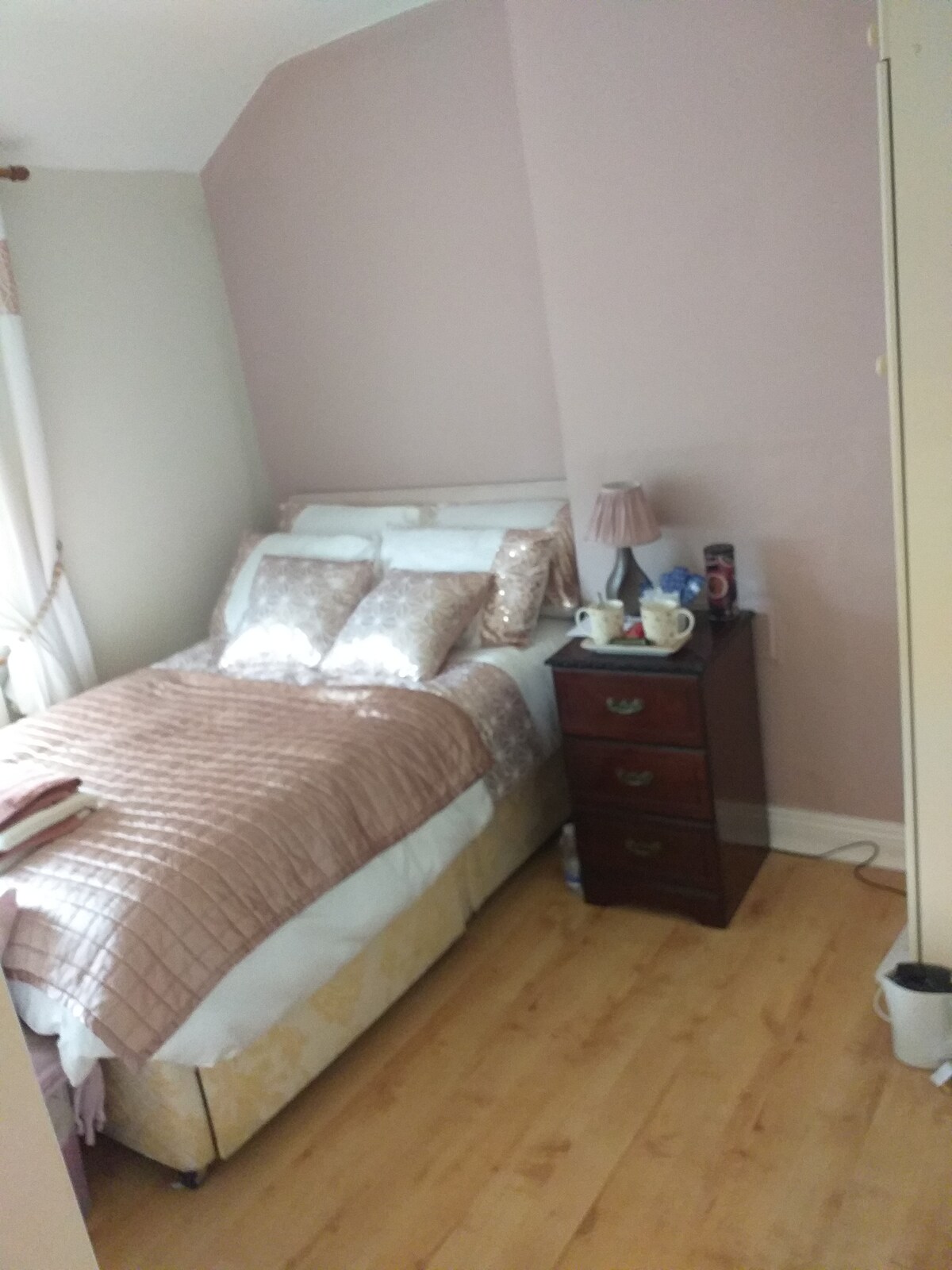 Seomra leapa dúbailte mór geal nua - aimseartha (leaba 5 troithe), ensuite álainn. An - phríobháideach. Bealach isteach féin. Bosca Glasála. Páirceáil Phríobháideach. Lonnaithe i cul ciúin de sac. 20 nóim ón aerfort. In aice leis an M50 agus an Luas, seirbhís bus den scoth go lár na cathrach (stad bus 5 nóiméad ó Stiúideo). Tá cuisneoir/reoiteoir, micreathonnán, citeal, Tóstaer, triomadóir gruaige, iarann agus clár iarnála ann. Bricfeasta ilchríochach curtha ar fáil. Sky TV, NETFLIX agus Wi - Fi. In aice le sráidbhaile le hollmhargaí, tithe tábhairne, Bialanna agus Takeaways.
