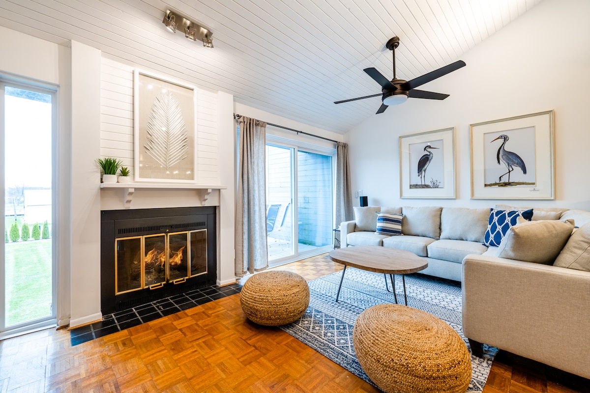 Tá sé suite i gcroílár South Haven! Táimid céimeanna ó Loch Michigan, South Beach, an Abhainn Dhubh, Bialanna & Siopadóireacht. Nuashonraithe le déanaí le tolg nua, leaba bhanríona & vibe trá úr! Aonad thuas staighre, a 25 chéim chuig saoire fhoirfe atá gar do gach rud atá le tairiscint i gcroílár South Haven! Rochtain phríobháideach ar dheic dín le radhairc iontacha ar an abhainn agus ar an muiríne. 1 seomra leapa ina bhfuil bealach isteach príobháideach ón gcosán, cistin bheag, seomra folctha agus seomra suí.