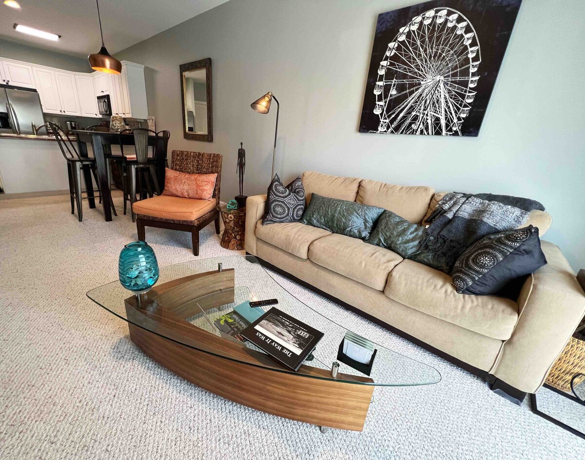 Fáilte go dtí ár seomra leapa/1 seomra folctha taibhseach sa bhaile! Níl na lóistíní seo ach céimeanna ón Southport Marina agus i gcroílár stairiúil Southport. Tá páirceáil do bháid, limistéar linn snámha lasmuigh, agus rochtain siúil agat ar go leor charms Southport, amhail bia agus siopadóireacht bhreá. Tá rothair agus cathaoireacha trá sa vardrús sa pháirceáil atá clúdaithe. Tosaíonn do scíth le féinseiceáil isteach éasca agus iontráil gan eochair! Bain sult as d'fhanacht.