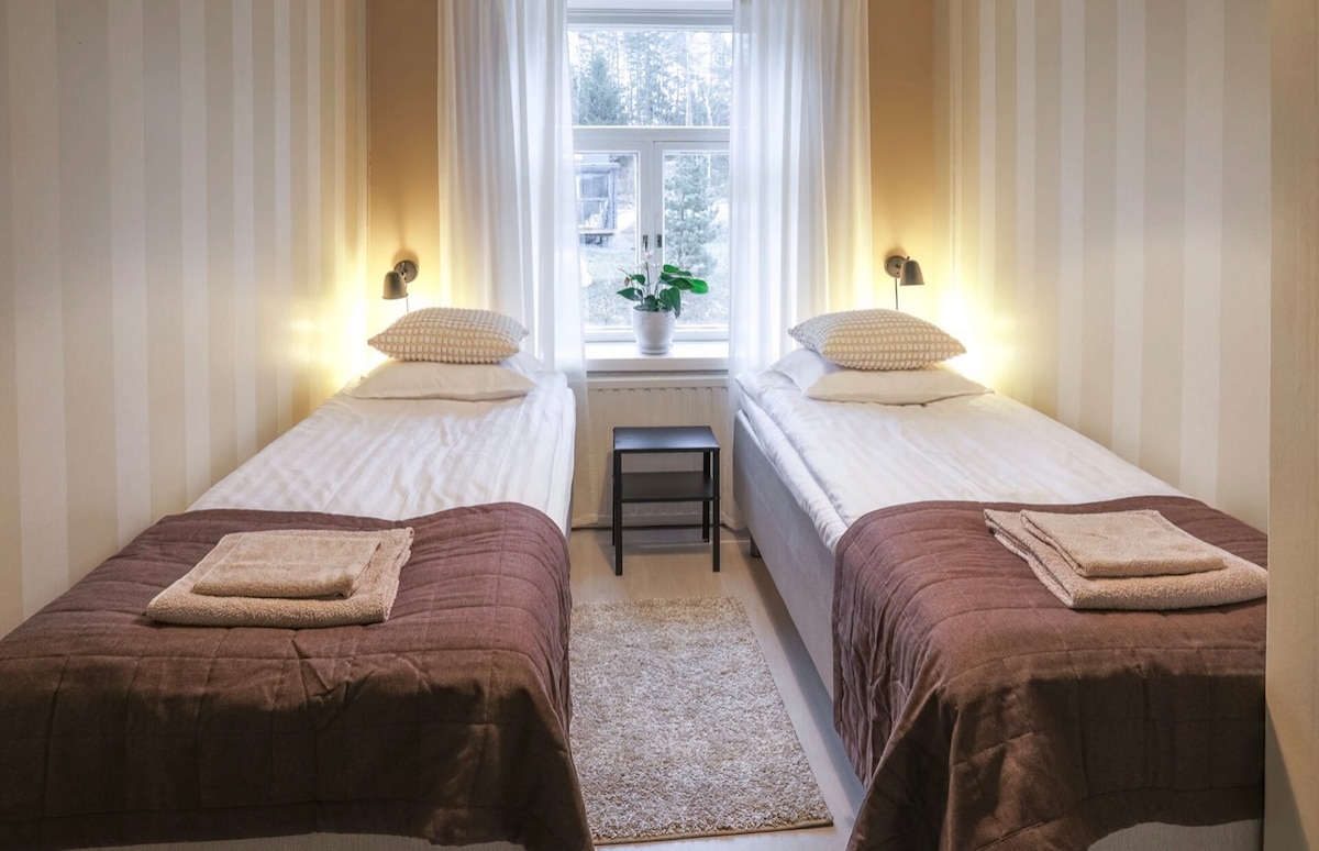 Teach ósta teolaí agus baileach i sean - lár Forssa. Cistineacha comhroinnte ar an dá urlár. Tá na seomraí go léir maisithe le bheith teolaí sa spiorad seanfhaiseanta, gan dearmad a dhéanamh ar na compord nua - aimseartha. Tá spás páirceála an - saor in aisce sa chlós. In aice le bialanna, Lóiste siamsaíochta Bead uisce, agus na cosáin siúlóide áille in Abhainn Loimijoki. I rith an tsamhraidh, tá Lippakioski sa chlós, áit ar féidir leat caife agus uachtar reoite a cheannach. Bricfeasta ag an Antin Konditoria in aice láimhe, 6 -10 i rith na seachtaine 8 €