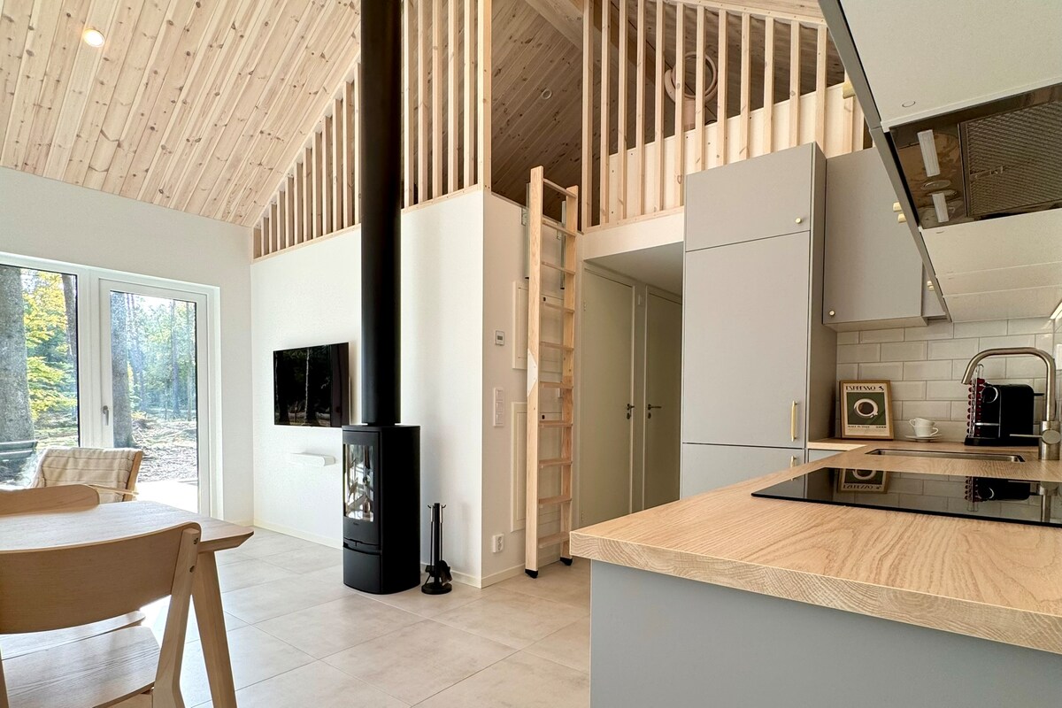 Teachín ina bhfuil sabhna, feadán te agus tine oscailte amuigh faoin aer san fhoraois. Teachín le sabhna, tobán te agus teallach lasmuigh. Réadmhaoin nua - athchóirithe nua - aimseartha ar ardchaighdeán. Is éard atá sa réadmhaoin príomh - theachín agus teachín spá níos lú le limistéar beárbaiciú pábháilte agus tobán te a bhaineann leis. Díon agus sealla scáileáin timpeall limistéar beárbaiciú agus tobán te agus deic mhór adhmaid timpeall. Timpeallacht foraoise Idyllic i lár Skåne in aice le Ringsjön le deiseanna neamhtheoranta maidir le hiascaireacht, fánaíocht, aer úr, snámh, turas agus scíth.