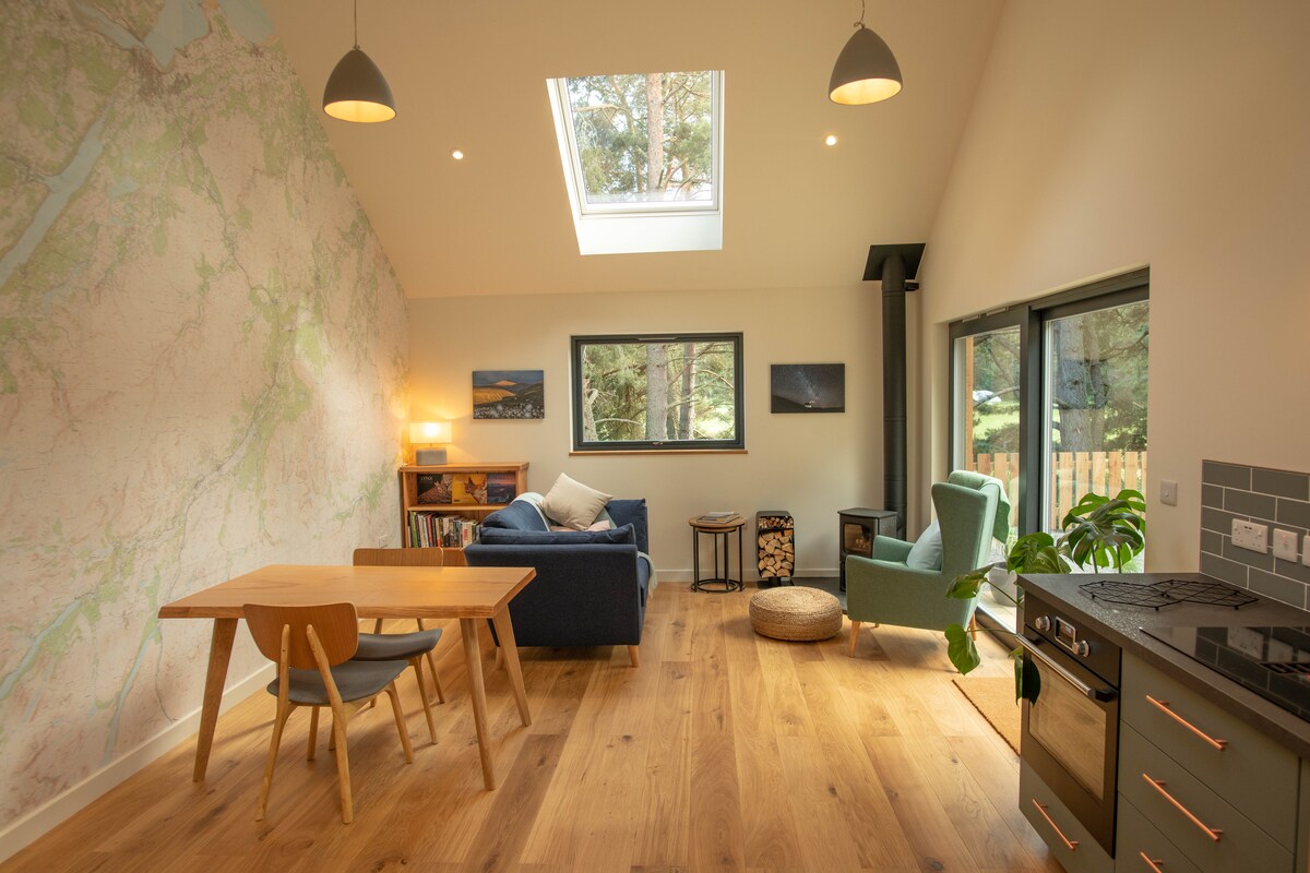 Cosy teachín beag le sorn dóite adhmaid, leaba rí, gé Ungárach síos duivé agus piliúir. Ar imeall na Coille Anagach lena go leor conairí siúil. 10 nóiméad chuig an Abhainn Spey. Táimid an chéad doras eile, ach beidh príobháideacht iomlán agat le do bhealach isteach, do chabhsa agus do pháirceáil féin. Is áit fhiadhúlra é an ceantar seo agus tá seans an - mhaith ann go bhfeicfidh tú ioraí dearga ag teacht chun bia a thabhairt ar bhord na n - éan taobh amuigh Radharc álainn ar na coillte agus ar na luí na gréine áille. Áit fhoirfe do dhaoine a bhfuil dúil acu sa dúlra.