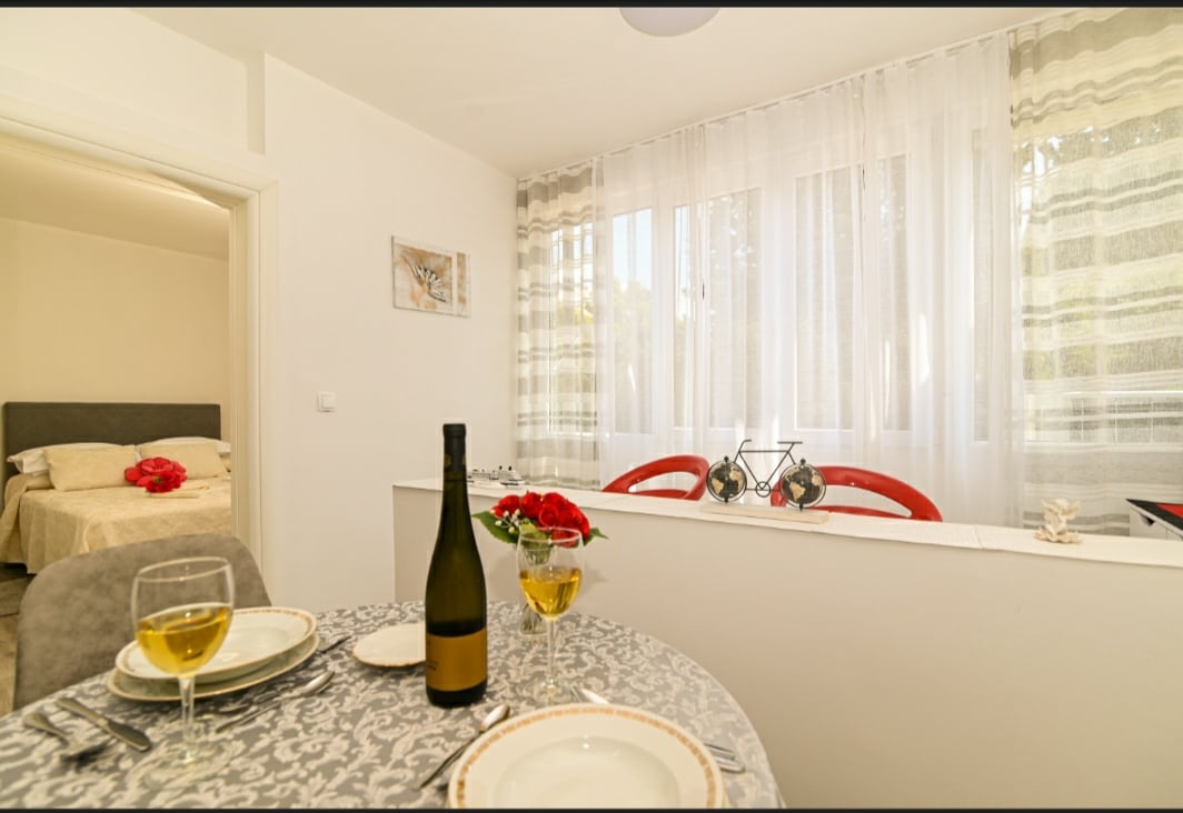 Tá an t - árasán suite sa cheantar stairiúil san fhoirgneamh a tógadh sna blianta tosaigh den 19ú haois. Tá árasán 49 m2 feistithe go hiomlán cuirtear fanacht compordach gearr nó fada ar fáil, agus Wi - Fi (32Mbps). Tá an chomharsanacht ciúin agus timpeallaithe ag plandaí na Meánmhara. Tógann siúlóid thaitneamhach tríd an bpáirc thú, ar feadh 10 -12 nóiméad, go dtí lár na cathrach. Tá trá Bacvice 100 méadar ar shiúl . Tugann an lóistín inár n - árasán an mothú go bhfuil tú ag fanacht i do theach féin.