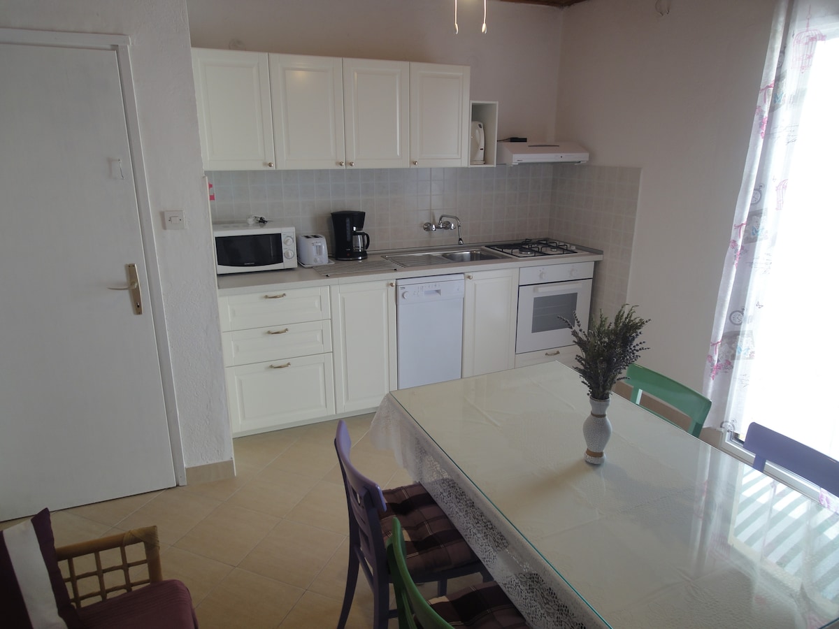 Tá árasáin Villa Ana suite ar an oileán parthais Drvenik Mali, agus plandaí na Meánmhara agus tránna áille timpeall orthu, i bhfad ó bhóithre agus ó chathracha plódaithe, agus radharc iontach ar an bhfarraige acu – is é an áit is fearr é do do shaoire!