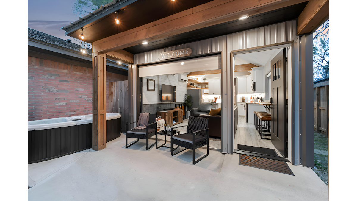 Fáilte go dtí The Garage-- Teach beag bídeach i stíl scioból atá thar a bheith príobháideach agus fíor-fhairsing! Ag 400 Sf, gheobhaidh tú an compord agus na saoráidí céanna a gheofá ó theach mór agus tú in ann a rá le do chairde gur fhan tú i dteach beag bídeach! Anseo don obair? Ní thugann ach 3 bhloc ó I -45 & WI - Fi hipear - tapa rochtain duit ar na interwebs nó ar an idirstáit ionas gur féidir leat oibriú go héifeachtúil. Anseo chun obair A SHEACHAINT? Mise freisin! Bain sult as luí gréine rómánsúil ónár bpaitió teolaí nó ó dheoch deas inár dteasthobán borbhlach!