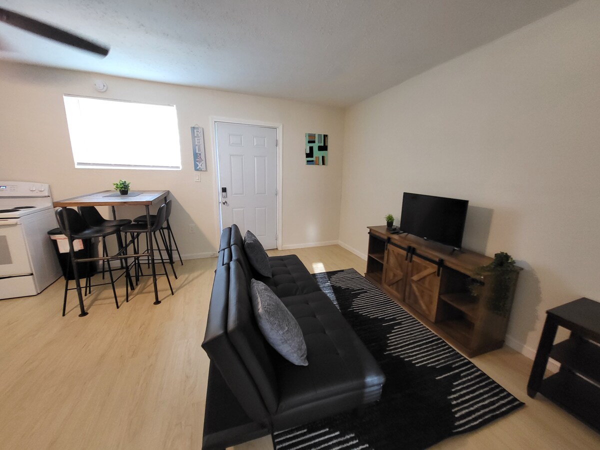 Lig do scíth san árasán stiúideo síochánta atá suite i gcomharsanacht Cove Stairiúil. Tá an Stiúideo ceangailte leis an bpríomhtheach ach tá bealach isteach príobháideach ann agus rochtain ar chúlchlós.conveniently suite in aice le Downtown Panama City, Historic St Andrews agus 11 míle go dtí na tránna is áille ar domhan. Tá bialanna,beáir, siopaí caife gar duit. Siúil go dtí an bá le haghaidh radharc álainn ar luí na gréine nó le haghaidh caife maidine nach bhfuil ach cúpla bloc uait.