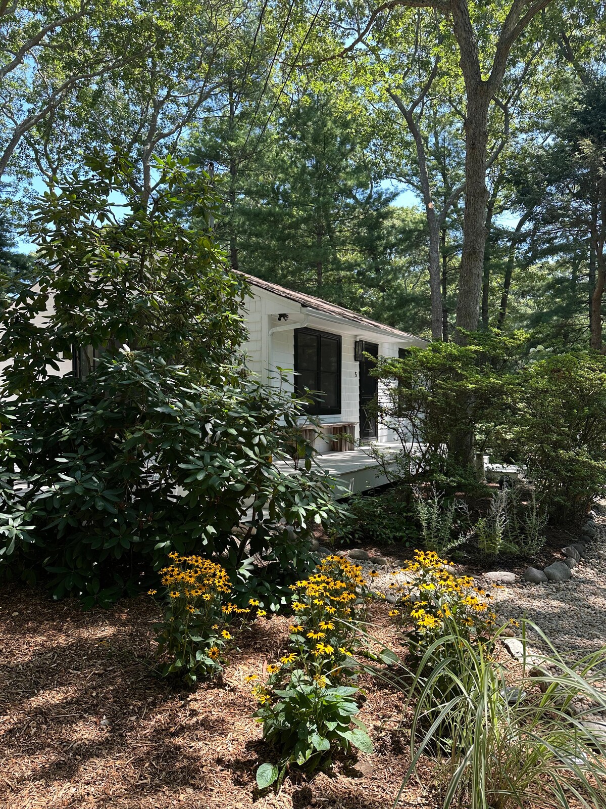 Tearmann suaimhneach atá tírdhreachtaithe go hálainn. Seomra leapa príobháideach nua - thógtha dhá sheomra leapa, seomra folctha amháin le teach áitithe an úinéara. Roinneann aíonna clós mór agus linn snámha leis an úinéir, agus tá deic phríobháideach agus áit suí acu. Bealach isteach príobháideach agus páirceáil. D'fhéadfadh sé go mbainfidh aíonna taitneamh as cithfholcadán lasmuigh agus beárbaiciú. Tabhair faoi deara, le do thoil, nach bhfuil aon chistin ann, ach cuirtear cuisneoir beag, déantóir caife Keurig agus micreathonnán, plátaí/uirlisí ar fáil. Tá sé suite go háisiúil ar thránna, ar shiopadóireacht agus ar bhialanna áitiúla in Oirthear Hampton.