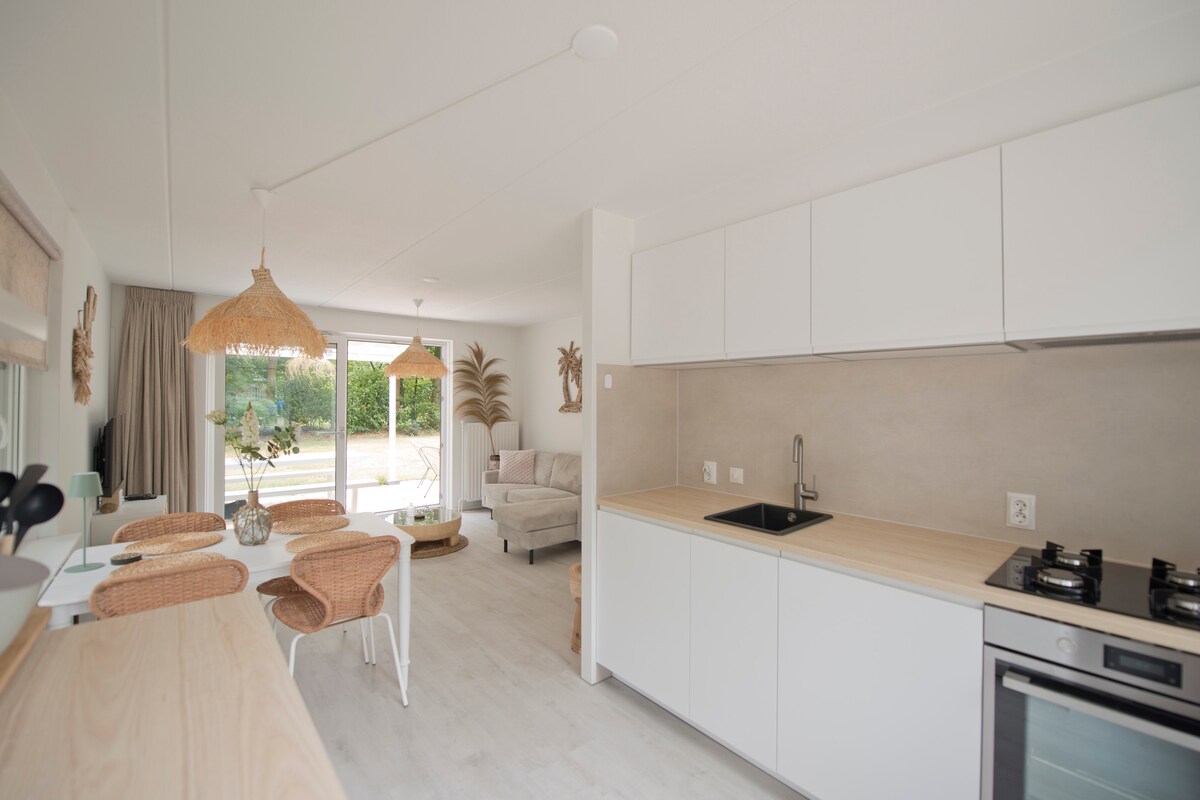 Fáilte romhat! Tá an teach mór seo, a bhfuil a dhoras féin aige, suite ar chúl ár dteach (ar an taobh eile dár ngairdín galánta). ♡ Seomra suí le teallach gáis, pictiúrlann, cistin le cuisneoir/oigheann comhcheangail/iteán/soirn, seomra folctha le cithfholcadán, lochta le leaba dhúbailte ♡ Lochtán fairsing le scáth gréine, troscán gairdín agus beárbaiciú ♡ Sauna agus tobán te le táille bhreise (€45) ♡ 15 nóiméad ar shiúl go dtí Haagse Markt (bialanna agus siopaí) 10 nóiméad sa charr/ 15 nóiméad ar rothar go dtí lár Breda.