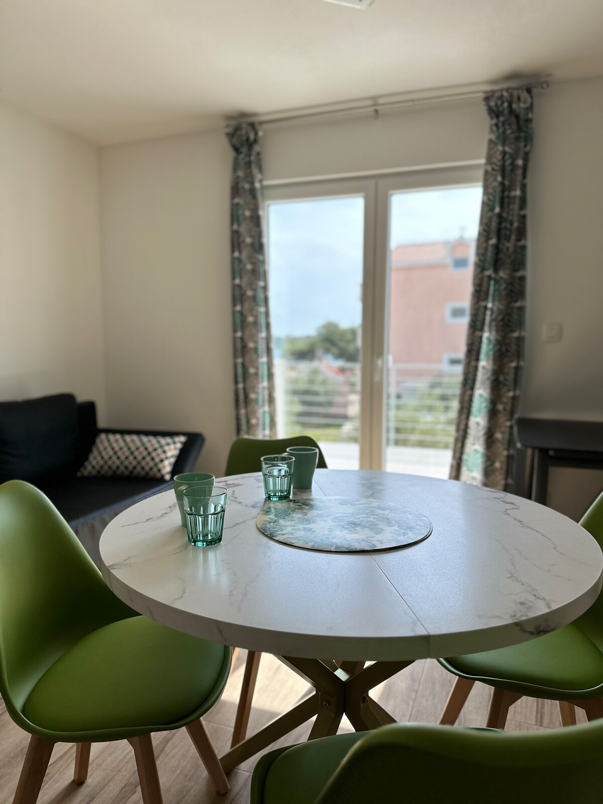 Villa Punta - Árasán ardaithe sómasach le radharc ar an bhfarraige agus le hardán dín, jacuzzi príobháideach agus sauna infridhearg. Árasán ardaithe deartha ina bhfuil 2 sheomra leapa, 2 sheomra folctha, bealach isteach príobháideach agus cistin le dara hardán. Tá linn snámha chomhroinnte lasmuigh, ionad aclaíochta, agus páirceáil ag an Villa. Suíomh den scoth! Tá gach rud in aice le villa (bialanna, trá,siopaí, rothar nó carr ar cíos, bácús) agus sin an rud a fhágann go bhfuil sé chomh speisialta sin! Suíomh uathúil le trealamh uathúil. Níl an chéad trá ach 50m ar shiúl agus tá lár Vodice 120m ar shiúl. Cuid chónaitheach de Vodice!